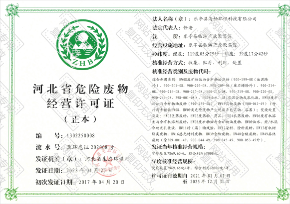 危險(xiǎn)廢物經(jīng)營(yíng)許可證